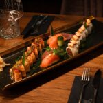 Garnelen I Ikura Royal I grüner Spargel I Yuzu Miso | 2 Sashimi Tuna I 2 Sashimi Lachs I 2 Nigiri Tuna I 2 Nigiri Lachs I zweierlei Tatar | Zusätzlich 2 Rollen nach Wahl